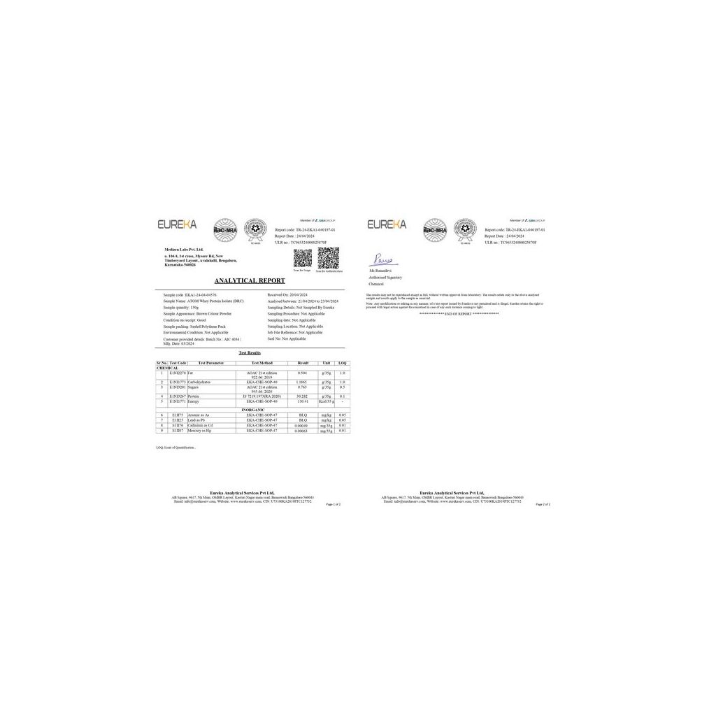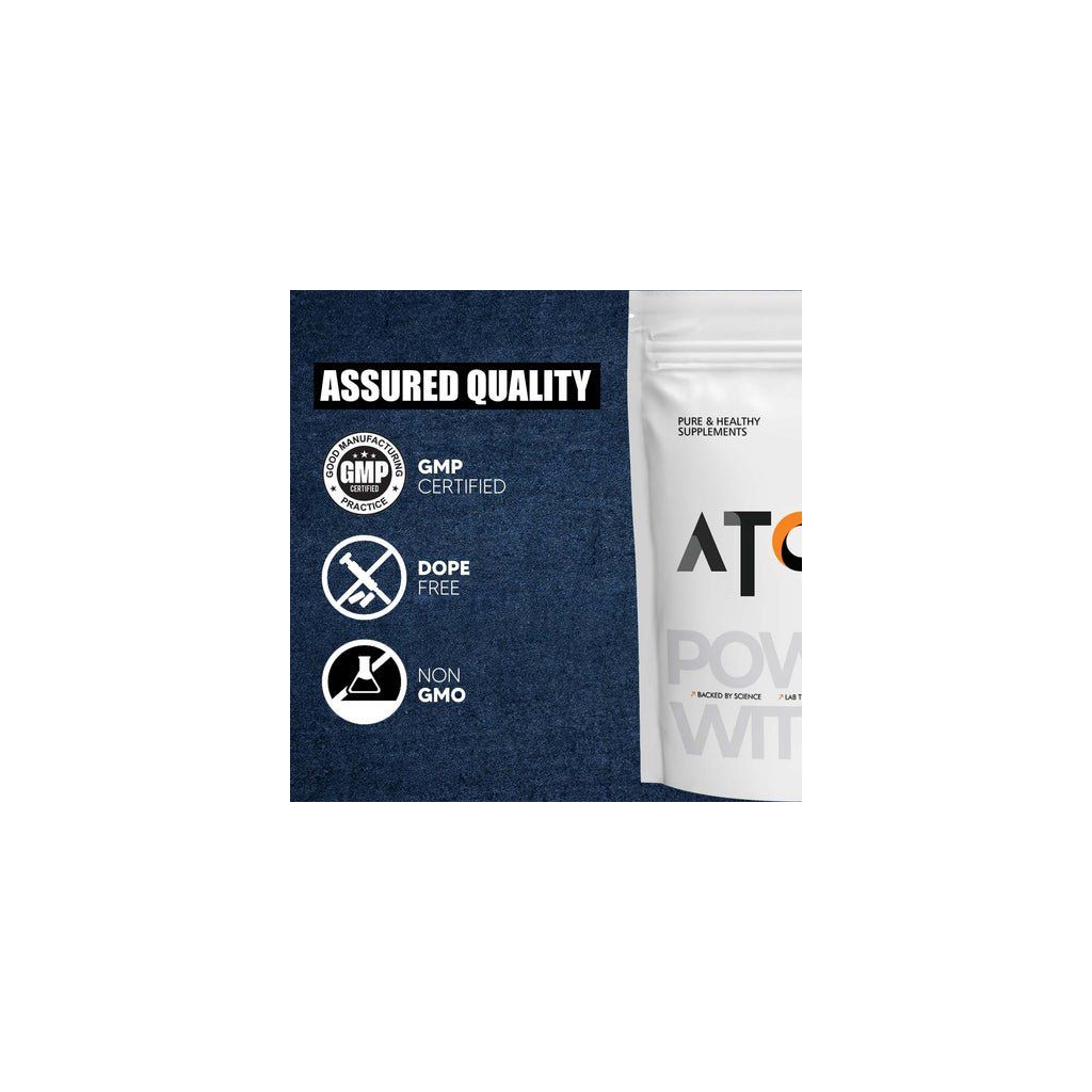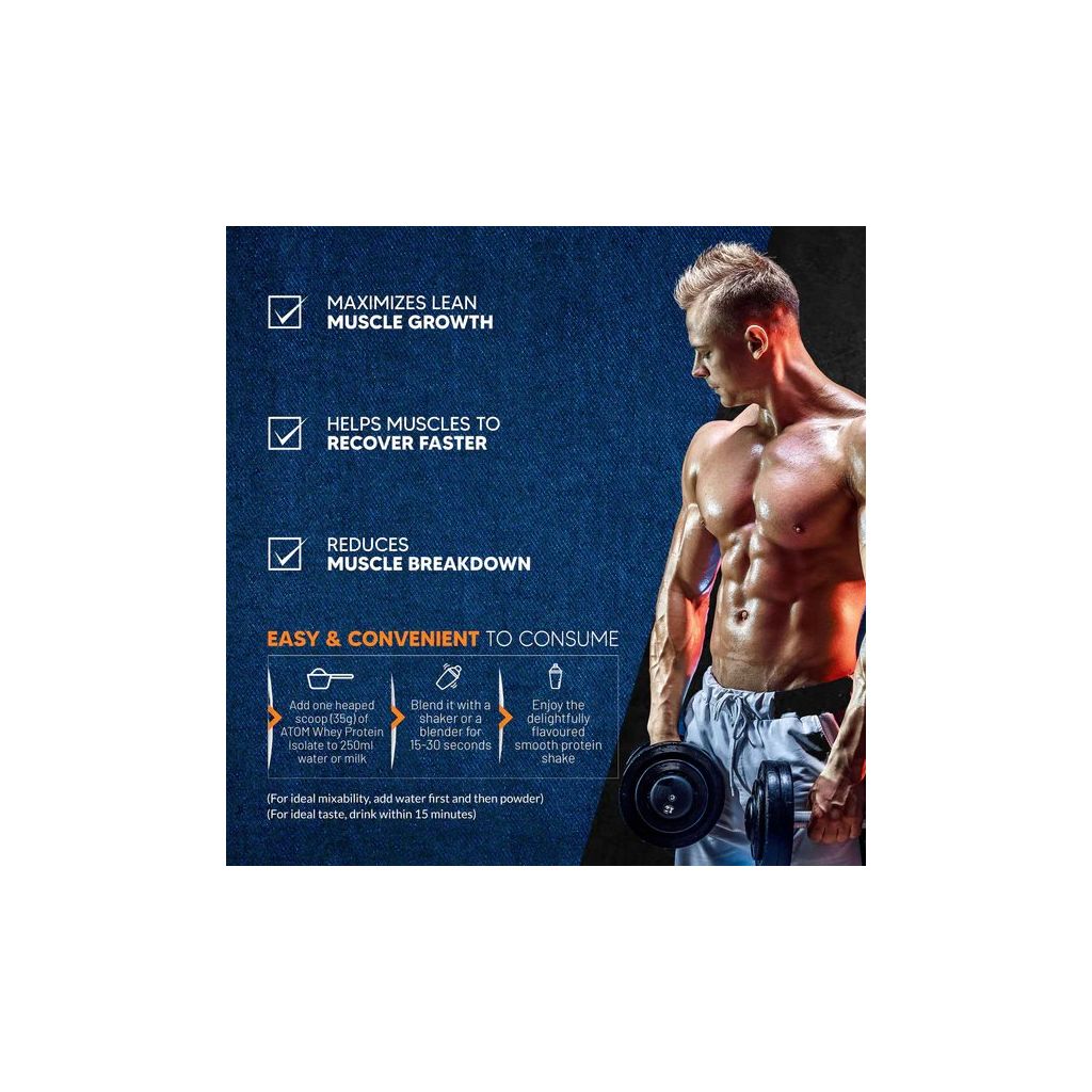Atom Whey Protein Isolate has high biological value. It is low in carbs, fat, and calories, and offers a potent 30g of protein per serving. Whey isolate is quickly absorbed and processed faster than other forms of protein—ideal for athletes, bodybuilders, and fitness enthusiasts aiming to improve performance and build muscle. The ultra-filtered whey is manufactured at an FSSAI-approved and GMP-certified facility and lab-tested for purity and potency.