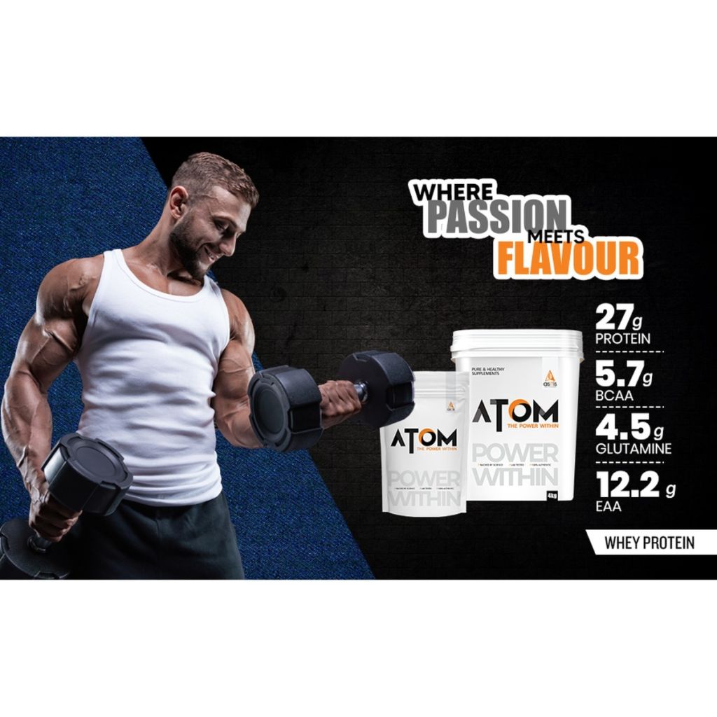 As-It-Is Atom Whey Protein is a premium blend of Whey Protein Isolate and Concentrate formulated to accelerate muscle growth, improve recovery, and enhance performance. Each serving delivers 27g of high-quality protein with a rich concentration of Branched-Chain Amino Acids (BCAAs) to maximize protein synthesis and reduce muscle breakdown.
