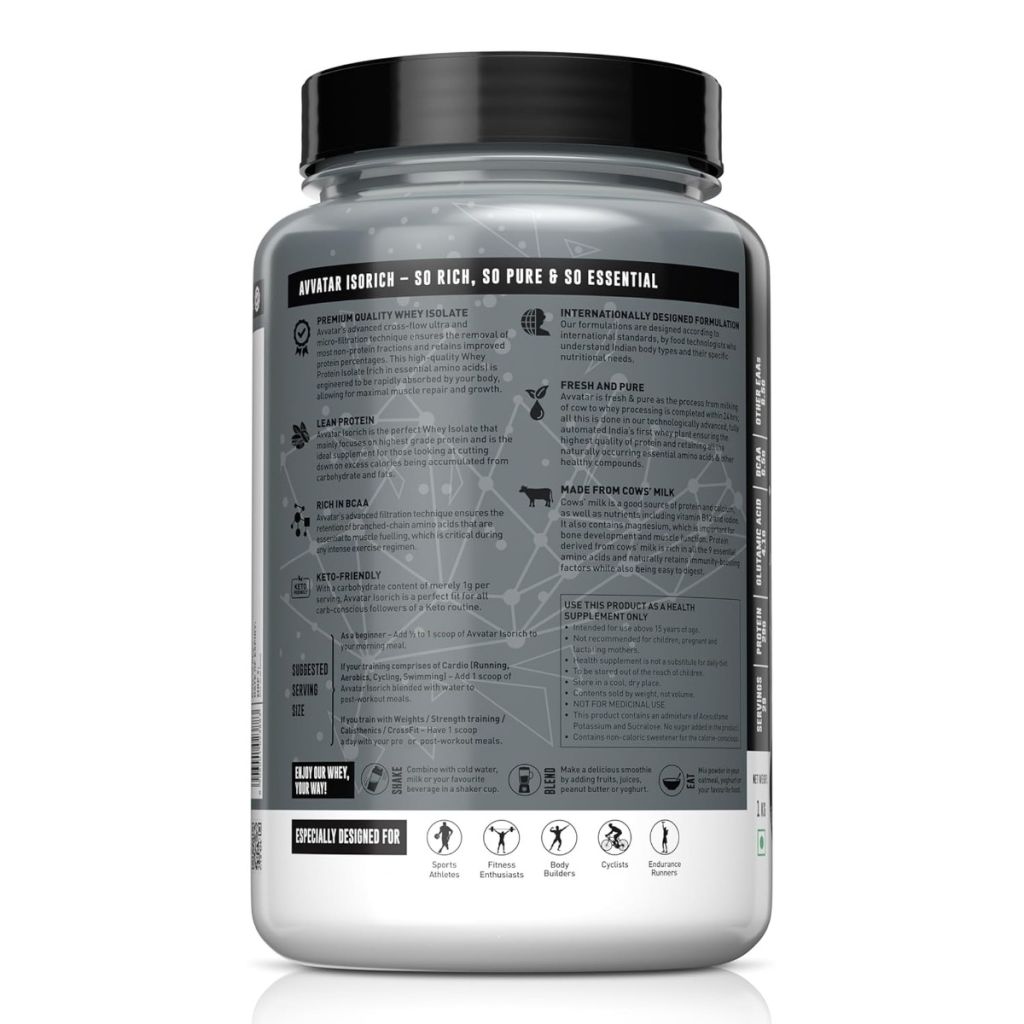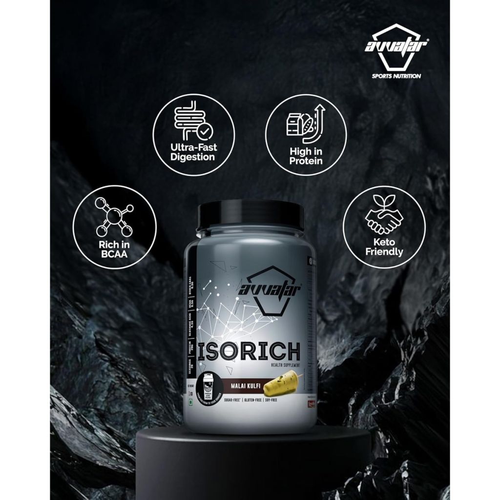 Avvatar IsoRich Whey Protein Isolate Malai Kulfi is ideal for anyone seeking a high-purity, deliciously-flavoured protein supplement. With one of the highest protein yields per scoop and a clean, authentic formulation, it supports everyday recovery, muscle gains, strength building, and nutrition needs for all fitness levels[1][8][10].