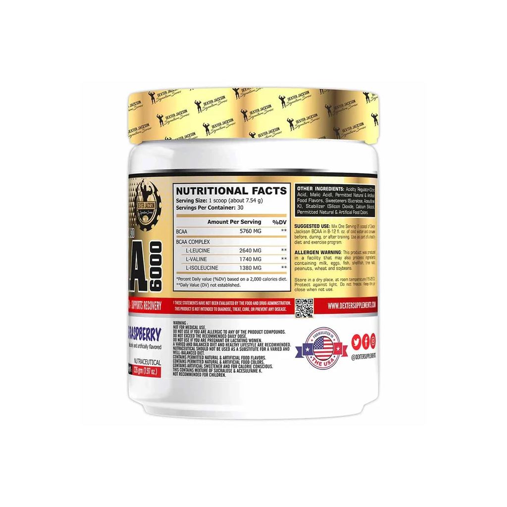 Dexter Jackson Black Series Turbo BCAA Fruit Punch provides 5.7g BCAAs in a research-backed 2:1:1 ratio per 13g scoop, enhanced with L-glutamine, L-citrulline, essential electrolytes, and vitamins for comprehensive muscle support and hydration. This intra- and post-workout supplement is engineered to promote faster recovery, reduce muscle soreness, support endurance, and protect lean muscle during calorie-deficit phases. The vegetarian formula dissolves swiftly in cold water and features a tangy fruit punch flavour. Designed for athletes and fitness enthusiasts, it is ideal for sipping before, during, or after exercise for best results.