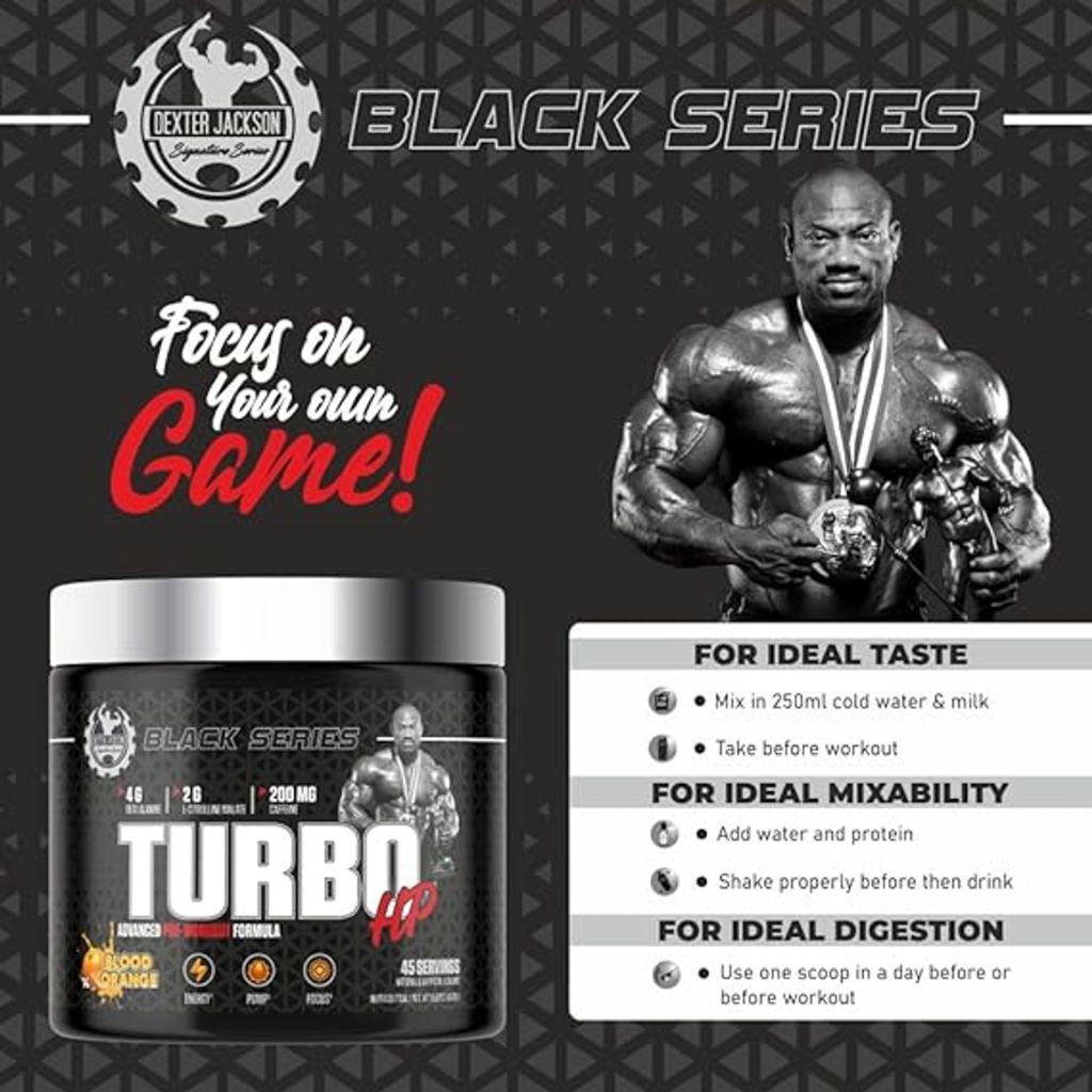 Dexter Jackson Black Series Turbo Charged Pre-Workout is well regarded for its combination of pump-enhancing, endurance-boosting, and focus-supporting ingredients, all in a smooth, fruit punch flavour. Its balance of performance components and easy mixability makes it a practical part of both beginner and advanced nutrition regimens[4][5][6].