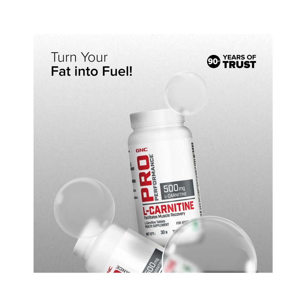 GNC Pro Performance L-Carnitine Tablets deliver pure L-carnitine to support metabolic and exercise needs. L-carnitine is naturally produced in the body and plays a vital role in transporting fatty acids into mitochondria, where they are burned for energy. This function is especially important during both weight management phases and intense workouts.