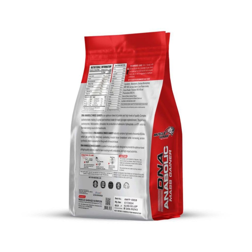 Muscle Garage DNA Anabolic Mass Gainer is meticulously crafted to deliver the perfect balance of high-quality calories, making it an ideal choice for lean muscle growth, endurance, and high-impact activities.