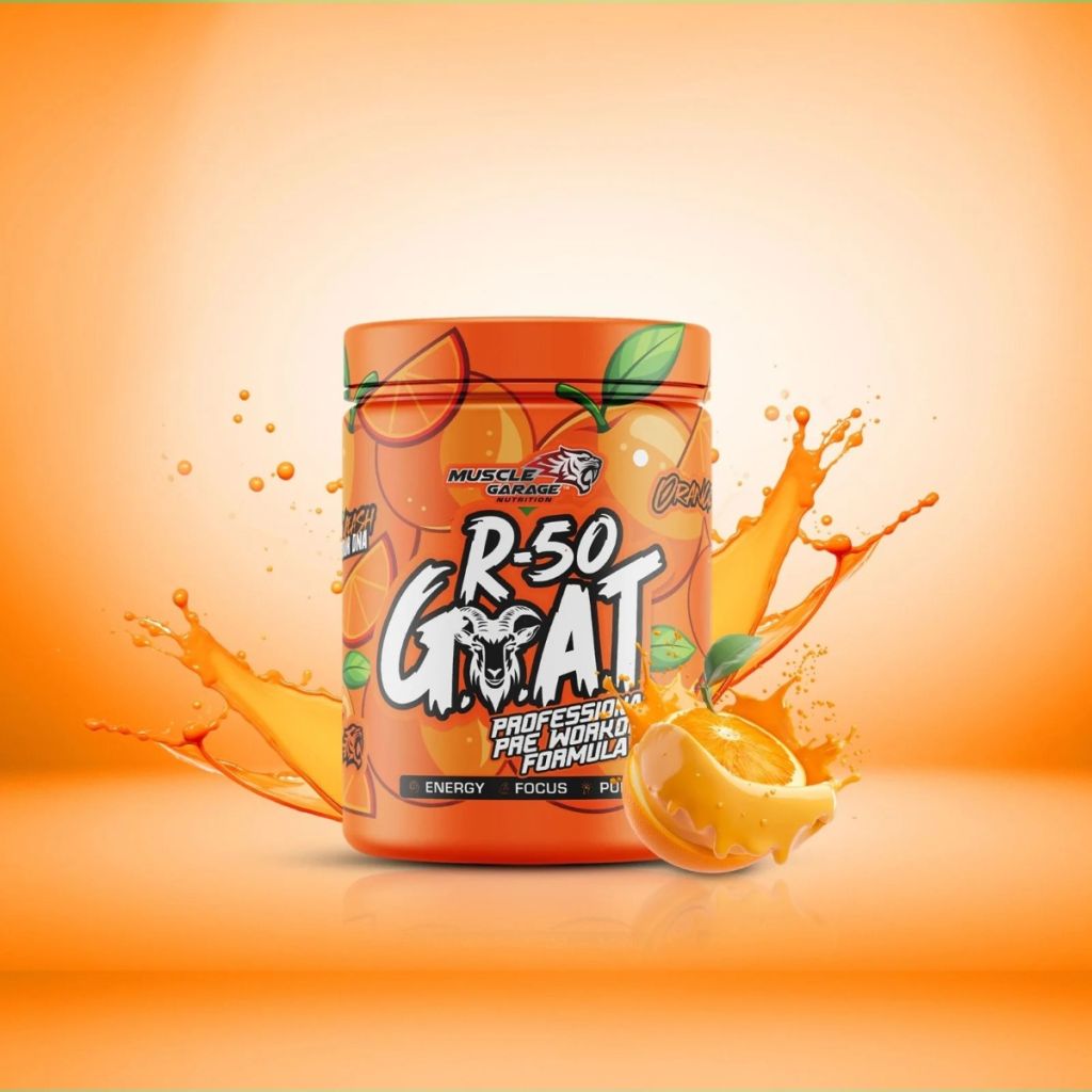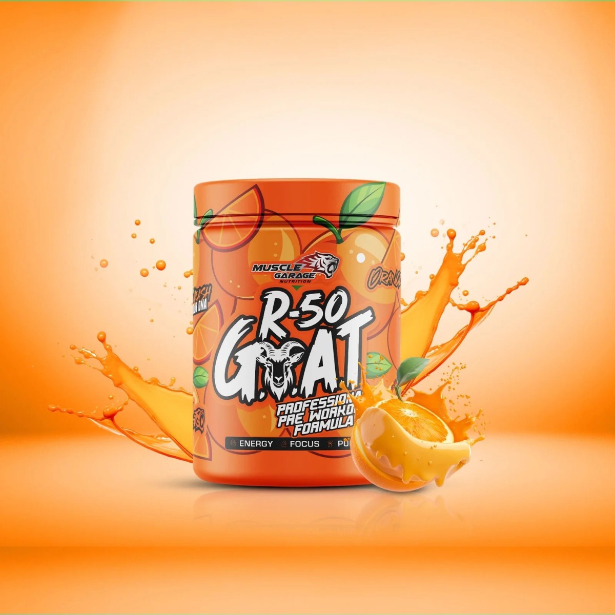 Dominate your workouts and achieve your fitness goals with Muscle Garage R-50 Goat Pre-Workout! 🚀