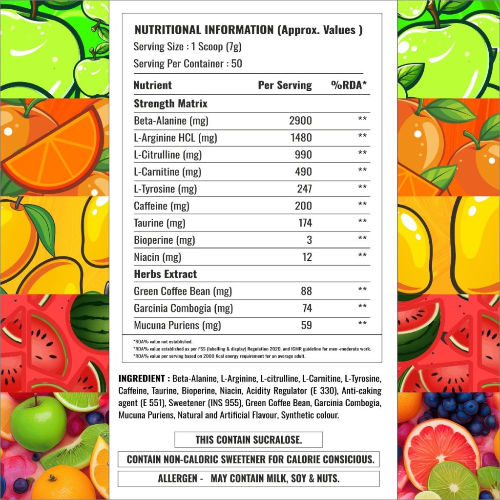 This high-octane blend delivers an intense energy surge, helping you power through your toughest workouts. It enhances endurance, focus, and strength, ensuring that each rep and set brings you closer to your fitness goals.