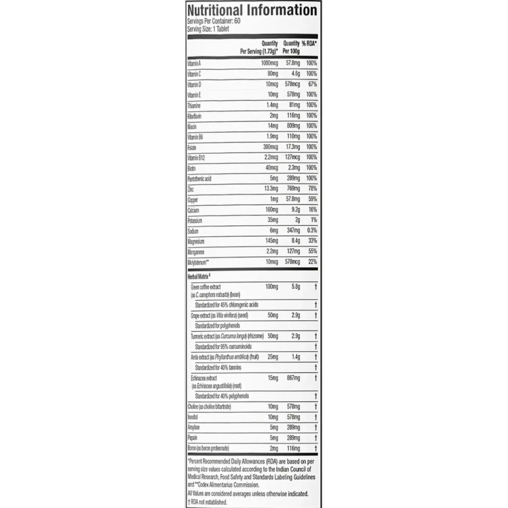 Green Coffee Bean Extract (as C. Canephora Robusta), Grape Seed Extract (as Vitis Vinifera), Turmeric Rhizome Extract (Curcuma Longa), Amla Fruit Extract (as Phyllanthus Emblica), Echinacea Root Extract (as Echinacea Angustifolia).