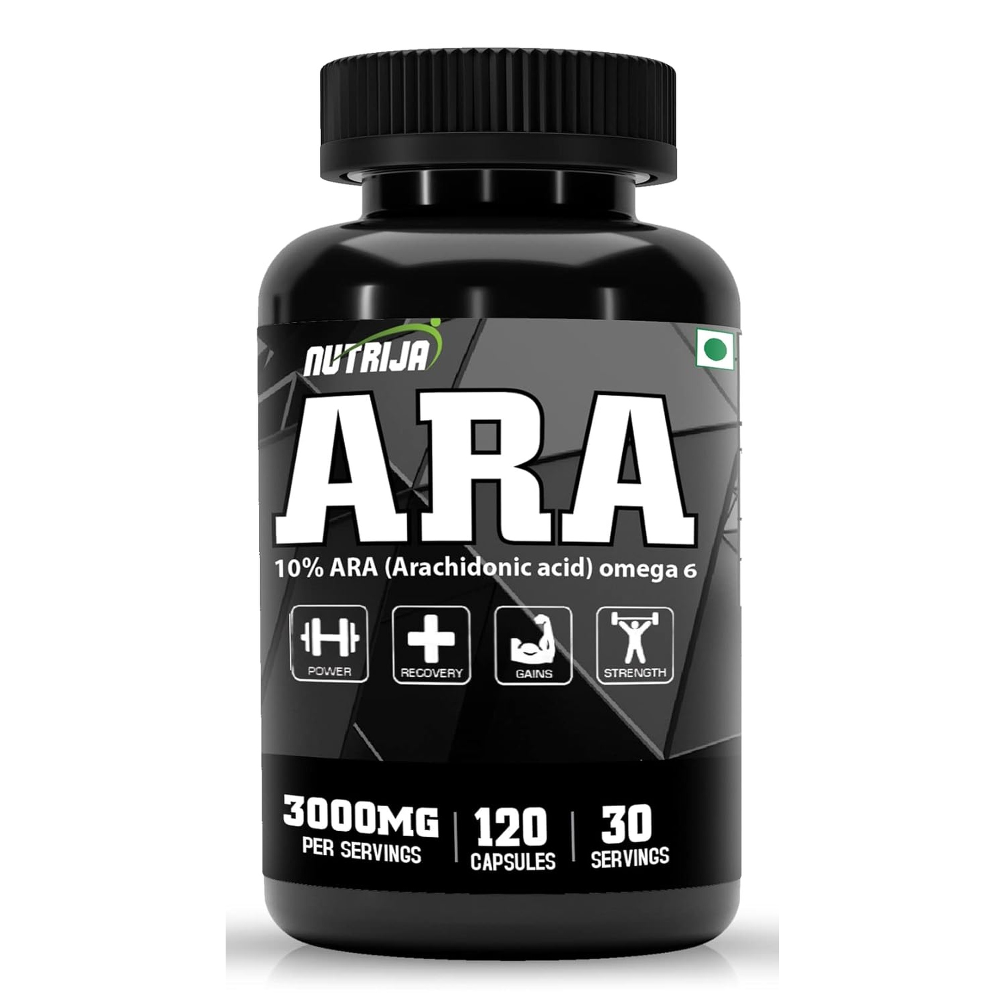 NUTRIJA ARA delivers 3000mg of pure Arachidonic Acid, a critical omega-6 fatty acid that serves as a primary component in the muscle hypertrophy process. This scientifically-proven compound enhances the inflammatory response within muscle tissue, promoting increased blood flow and nutrient delivery that directly supports muscle growth and strength development.