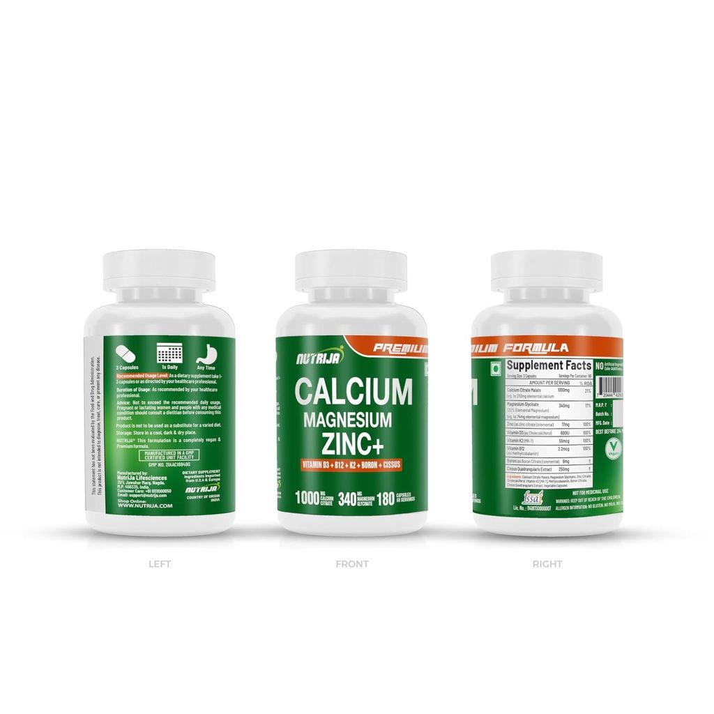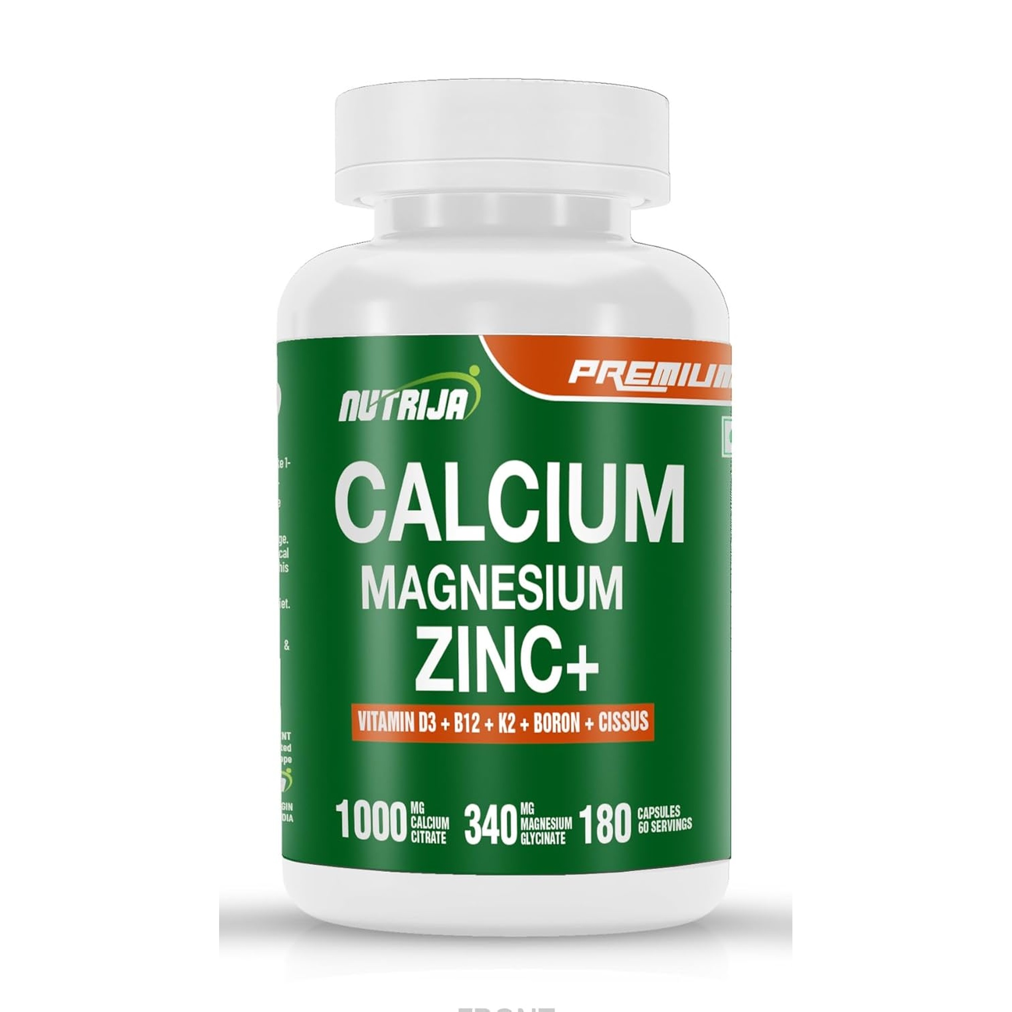 Nutrija Calcium Magnesium Zinc+ utilizes precision-engineered mineral ratios based on extensive nutritional research and bioavailability studies. The formulation combines 500mg elemental calcium with 250mg magnesium in the optimal 2:1 ratio that maximizes bone mineral density support while preventing calcium-magnesium imbalances. Each serving delivers 15mg of chelated zinc for superior absorption compared to standard zinc oxide formulations. The addition of vitamin D3 and K2 cofactors creates a comprehensive bone health matrix that addresses calcium absorption, transportation, and proper deposition within bone tissue for long-term skeletal strength.
