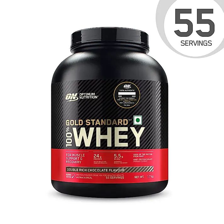 Optimum Nutrition Gold Standard 100% Whey Protein Double Rich Chocolate delivers 24g of premium-quality protein per serving, sourced primarily from whey protein isolate along with concentrate and peptides. Each scoop provides 5.5g of BCAAs, 11g EAAs, and over 4g glutamine for muscle recovery, strength, and performance support. The instantized powder is low in fat and carbohydrates, gluten-free, and vegetarian-friendly, making it suitable for a wide range of nutrition plans. Designed for easy mixing, it produces smooth, rich chocolate shakes ideally suited for post-workout recovery or daily protein supplementation.