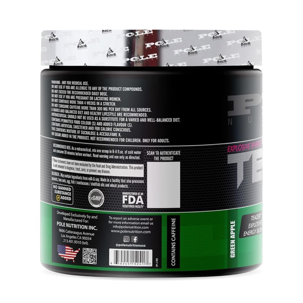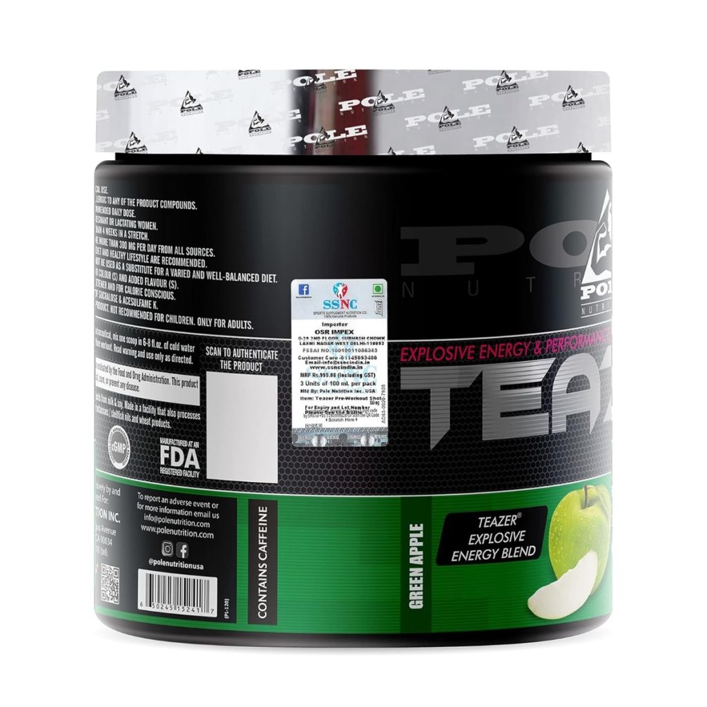 Pole Nutrition Teazer Pre-Workout - High Performance Formula In Green Apple Flavor, 270G - 30 Servings For Explosive Energy And Focus
