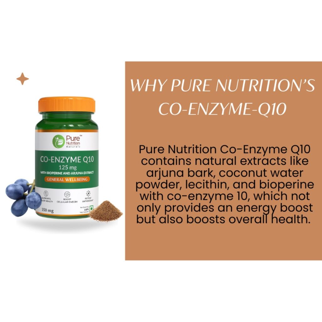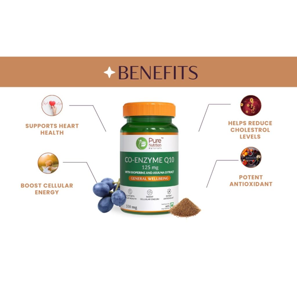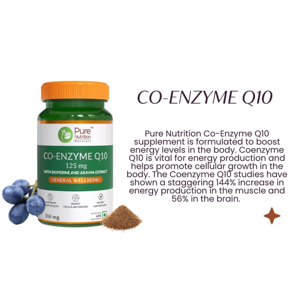 Pure Nutrition Bio Coenzyme Q10 125Mg 60 Veg Capsules, High Absorption Coq10 Supplement With Bioperine® & Arjuna Extract For Heart & Brain Health, Boosts Cellular Energy, Immunity, Male Fertility