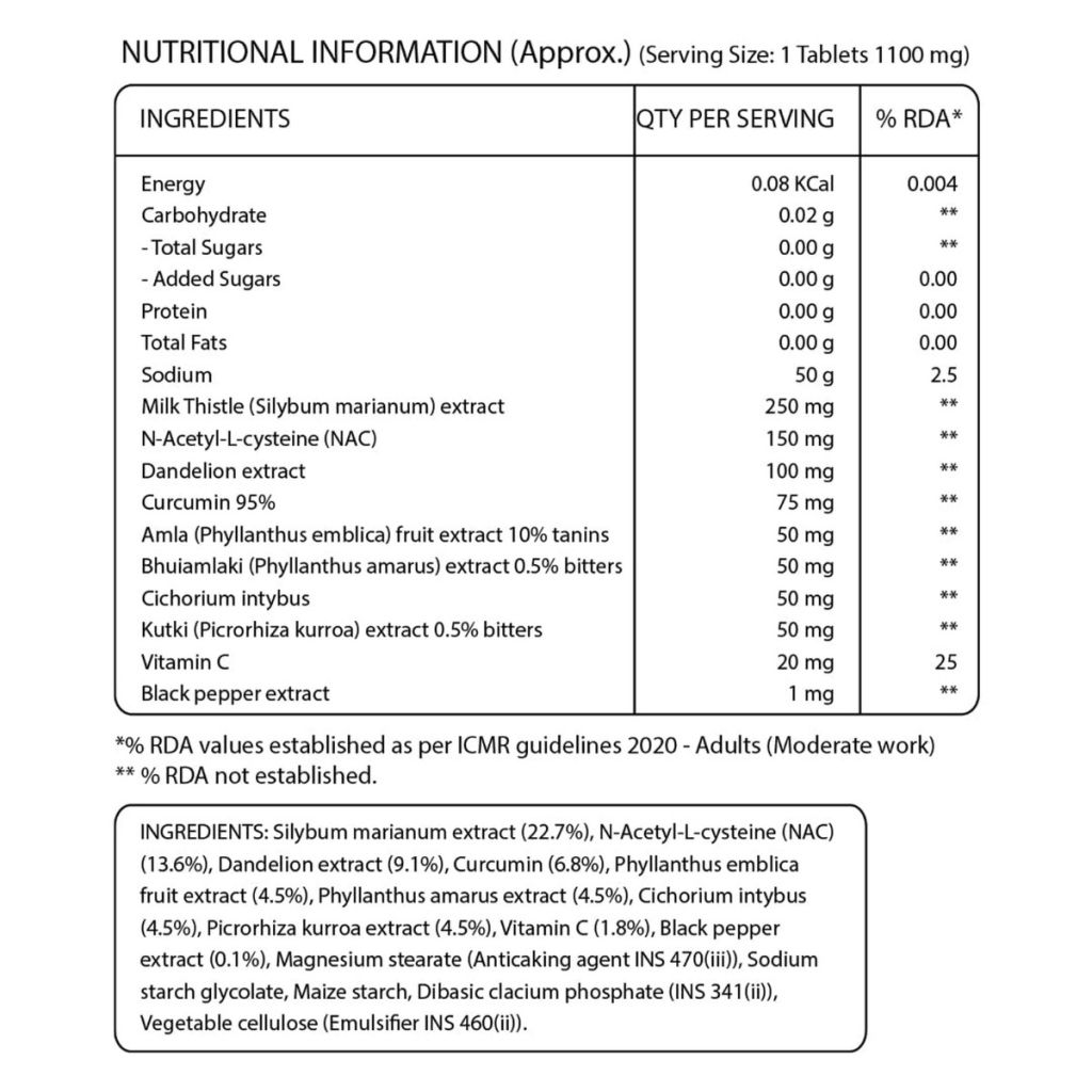This liver detox supplement is enriched with Milk Thistle extract (known for its hepatoprotective effects), combined with Vitamin C and N-Acetyl L-Cysteine to create a comprehensive formula that supports liver health, reduces oxidative damage, and improves digestion.