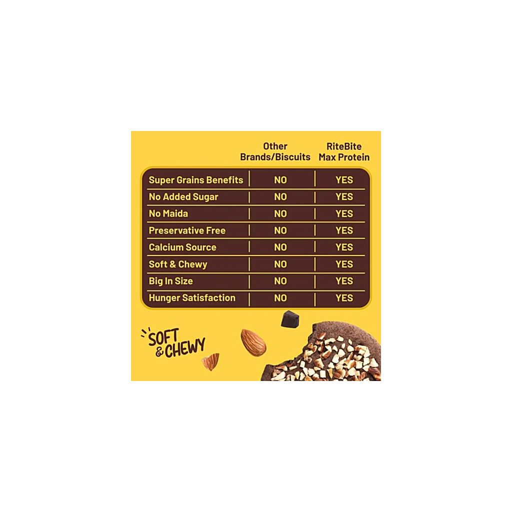 Created with a commitment to clean, plant-forward nutrition, the RiteBite Max Protein Choco Almond Cookie helps you power your day, stay on track with your health goals, and enjoy every bite—anytime, anywhere.