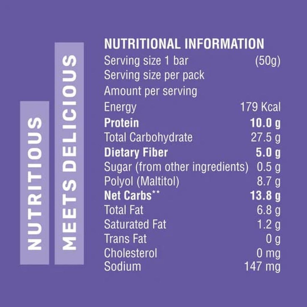 Bar for Everyone: With 10g of protein in each bar, 5g of fiber, and the goodness of almonds in every bite, the Max Protein Choco Almond Bar is the perfect addition to your daily lifestyle. Free from preservatives and artificial sweeteners, this bar strikes the perfect balance between taste and health, and is 100% vegetarian.